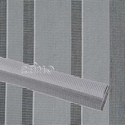 Rullet ARISOL Safari Matta med grå och vita ränder. Mattan är snyggt hoprullad.