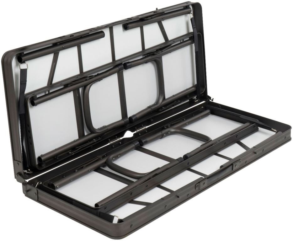 Om du letar efter ett praktiskt picknicksats för campingresan är detta set designat för enkel transport och förvaring. Setet fälls helt ihop till kompakta 93 x 41 x 10 cm, så det passar i bilen tillsammans med resten av din campingutrustning. Den lätta aluminiumramen gör det enkelt att bära över ojämn terräng från bilen till tältplatsen, medan handtagen säkerställer bekväm transport.