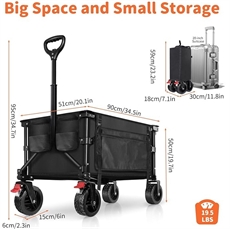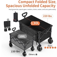 BELEEV XXL Trävagn med broms har en kapacitet på 130 L och kan bära upp till 100 kg, vilket gör det möjligt att transportera en hel veckas inköp på en gång. De stora 6-tums hjulen säkerställer jämn transport på sand, grus och gräs, medan 360° roterande framhjul med bromsar gör det lätt att navigera genom smala snabbköpsgångar. Fäll enkelt ihop vagnen för att spara upp till 85 % lagringsutrymme med en kompakt hopfällbar storlek på 30 x 18 x 59 cm, så att den passar i bilens bagageutrymme.