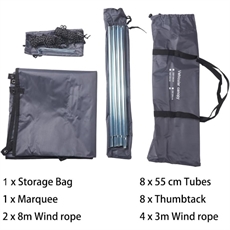 Markisen är gjord av slitstarkt, högkvalitativt Oxfordtyg. Tillverkad med kraftiga metallbeslag och robusta stångdun
