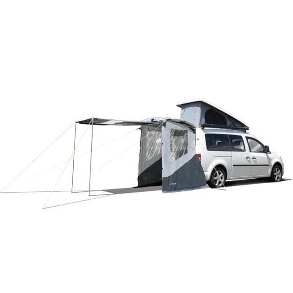 Detta specialdesignade häckelt passar exakt till din VW Caddy 5. Med ett vattenspelartryck på 3.000 mm håller tältet dig torr under växlande väderförhållanden. Den flexibla frontväggen kan rullas upp eller användas som solsegling.