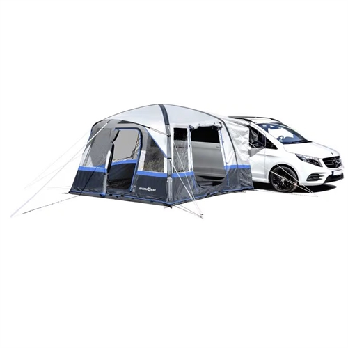 Detta bustält med AIRTech-teknologi ger dig 8 m² extra utrymme vid ditt fordon. Den integrerade elektriska pumpen med uppladdningsbart batteri gör uppsättningen snabb och enkel. Tältet är kompatibelt med fordon mellan 180 och 240 cm i höjd och är tillverkat i hållbart 150D Oxford Polyester PU-material som skyddar mot vind och väder.