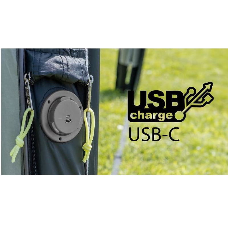 Med dimensioner på 310 x 260 x 225 cm får du bra ståhöjd och gott om plats för både boende och förvaring. Den integrerade pumpen har en batteritid på 2 timmar och en laddningstid på 3 timmar via USB-C. Tältet väger 19,2 kg och packas ner till 80 x 35 x 35 cm.