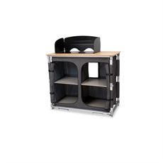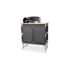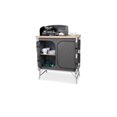 Detta campingkök kombinerar effektivitet med praktisk design. Det snabba uppställningssystemet gör det enkelt att komma igång med matlagningen, medan den justerbara höjden från 820 till 1070 mm säkerställer bekväm matlagning. Bambuöverflatan ger en robust arbetsyta, och aluminiumramen håller vikten nere på endast 13 kg.
