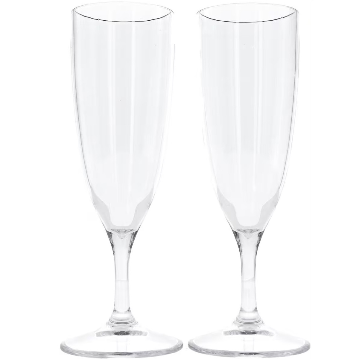 Dessa champagneglas är tillverkade i livsmedelssäkert SAN-material utan skadliga ämnen. Med sin smala flöjtform framhäver de bubblorna och färgen i din champagne. Glasen är lätta att underhålla, då de tål maskindisk i den övre korgen.