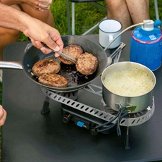 Campingaz har specialiserat sig på pålitliga lösningar för utomhusmatlagning. Med en vikt på 1.400 g och kompakta mått passar denna gasbrännare enkelt i ryggsäcken, medan driftstiden på över en timme med CV470+-patronen ger tid nog att tillaga flera måltider. Den stabila konstruktionen fungerar väl både på campingplatsen och i båten. Hitta fler campinglösningar i vårt urval av gasolspisar.