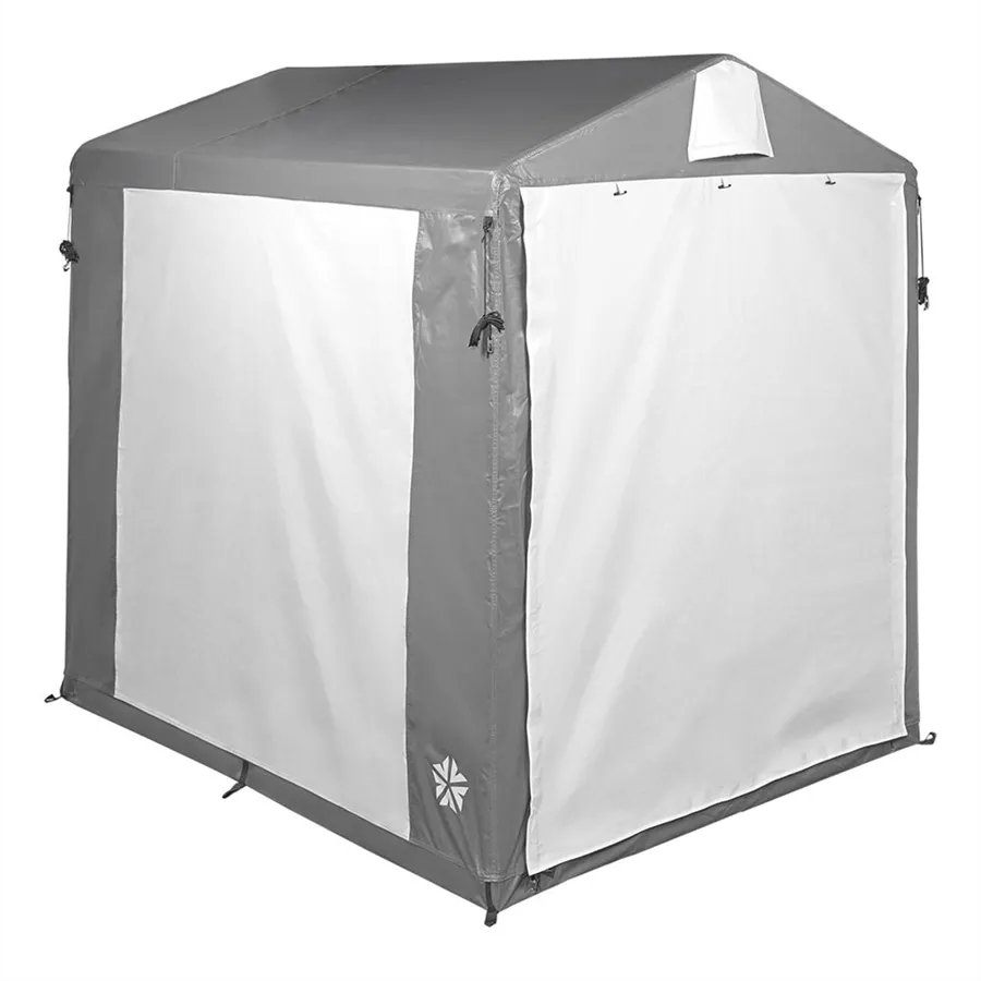 Detta förvaringstält är byggt med hållbart PVC-materiale som skyddar dina trädgårdsmöbler och verktyg mot regn och sol. En robust 25/22 mm stålrama säkerställer stabilitet i alla väderförhållanden. Med plats för 3-4 cyklar håller du familjens cyklar torra och säkra. Bakventilationen förhindrar kondens, så din utrustning förblir torr. Solida spiralblixtlås ger snabb och säker tillgång till dina förvarade föremål.