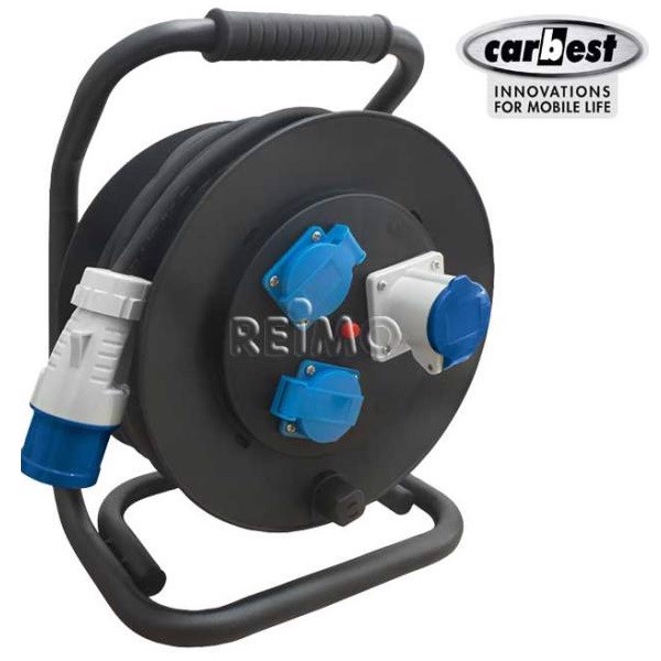 Praktisk kabelvinda med 25 m och slitstark kabel. Utrustad med 1 st. CCE uttag, och 2. Schuko uttag.