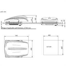 Takluckan är ECE-godkänd och testad till hastigheter upp till 130 km/h. Den är tillverkad i stöt- och UV-beständigt material, vilket säkerställer lång hållbarhet under alla väderförhållanden. Den passar till väggtjocklekar från 27-80 mm, vilket gör den kompatibel med de flesta fordon.