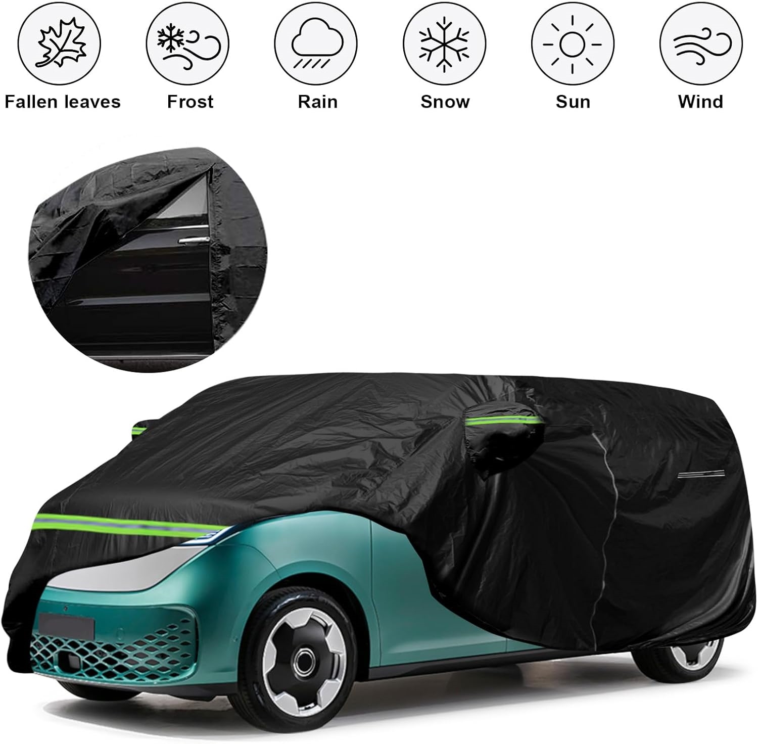 Detta överdrag är specifikt designat för SWB VW ID. BUZZ och ID. BUZZ Cargo. Materialet är 210D vattentätt Oxford-tyg, som är tjockt och hållbart nog för att skydda din bil mot regn, snö, UV-strålar, damm, föroreningar, fågelspillning, löv, pollen och sura regn. Dragkedjeöppningen ger enkel tillgång till förardörren, och en separat öppning vid laddningsporten innebär att du kan ladda utan att ta bort överdraget – praktiskt när bilen är parkerad vid bostaden.
