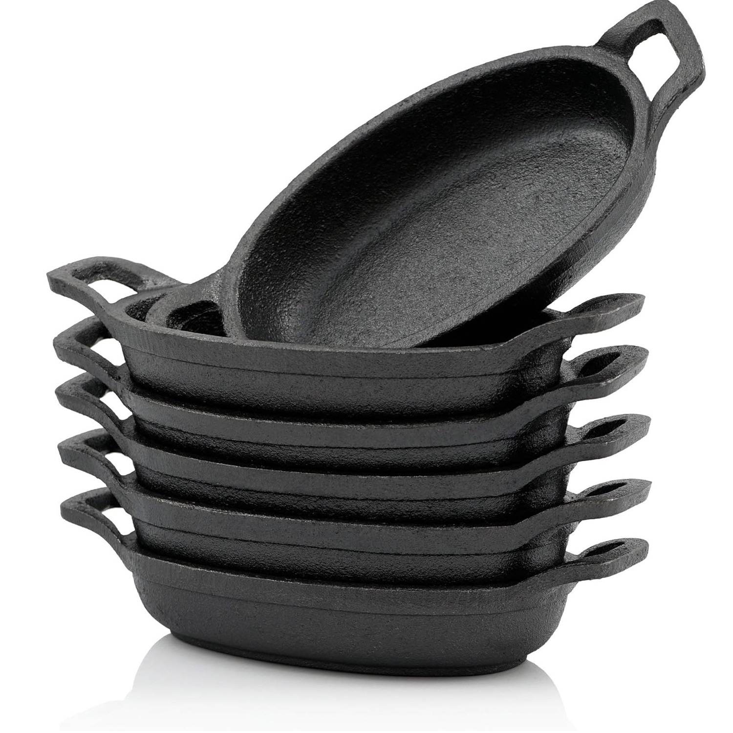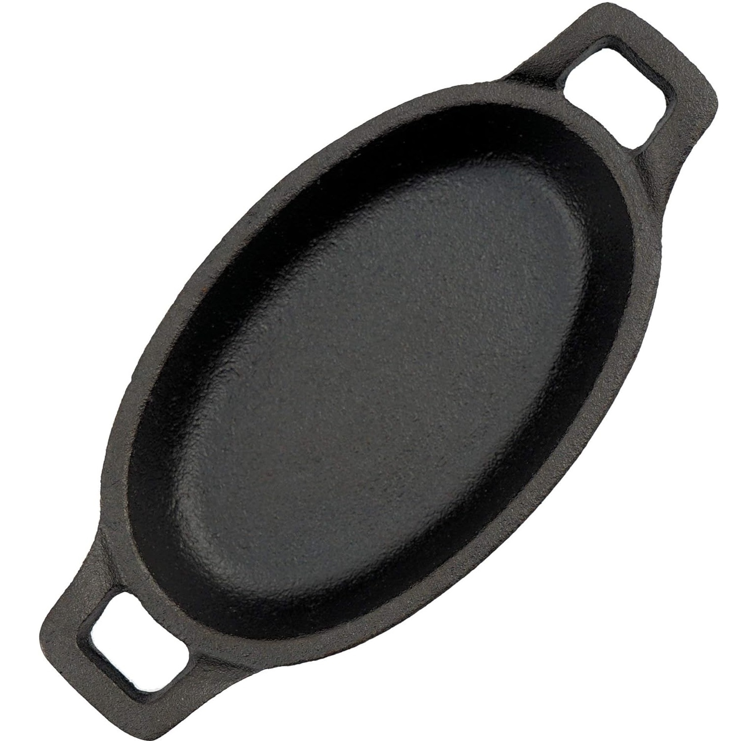 Denna gjutjärnspanna är värmetålig och kan användas i ugn och grill, vilket ger dig flexibilitet för olika matlagningsmetoder. Gjutjärnet säkerställer jämn värmefördelning, så dina dagliga måltider tillagas jämnt. Du kan till och med använda pannan direkt över eld eller glöd, vilket gör den idealisk för camping och picknick. Den ovala formen med två handtag ger säker hantering under både tillagning och servering.