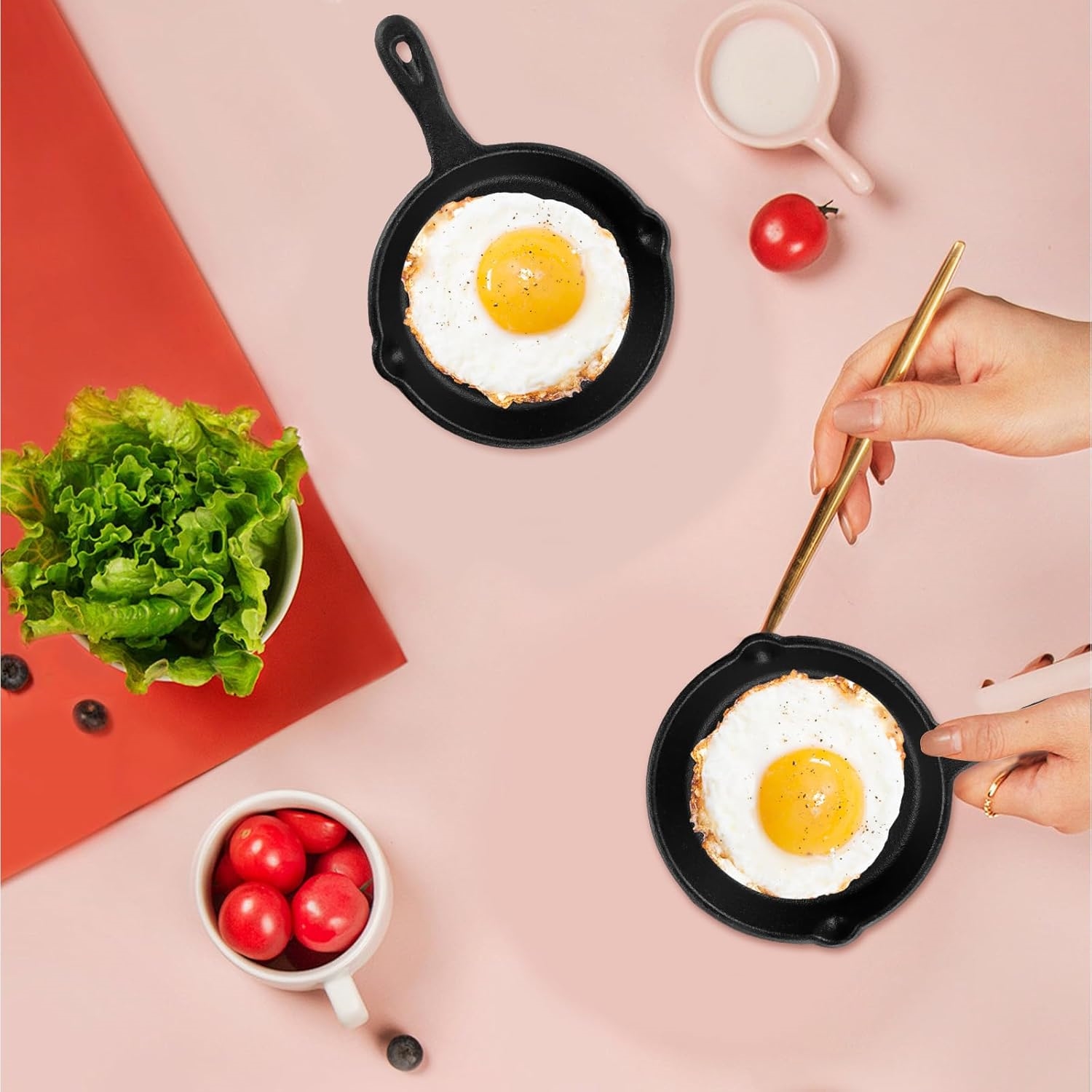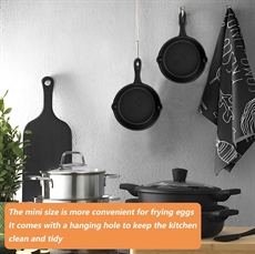 Den här serveringspannan är tillverkad av högkvalitativt gjutjärn, vilket ger utmärkt värmebehållning och säkerställer jämn tillagning. Med en diameter på 10 cm är den designad för enkla portioner – stek ett ägg eller en liten korv snabbt till frukost. Pannan fungerar på induktionsspisar, elektriska ugnar och gasspisar, så den passar till ditt kök oavsett spistyp.