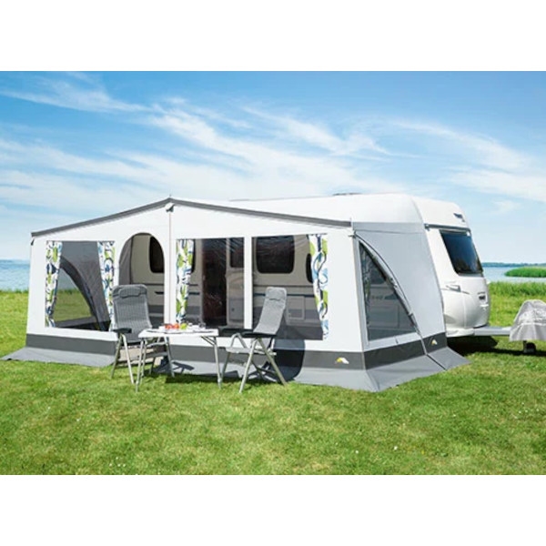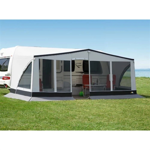 Med denna oerhört flexibla DWT Flair Vario Front del, som zippas fast till taket, kan man stänga sitt solskydd så det i praxis fungerar som ett förtält.