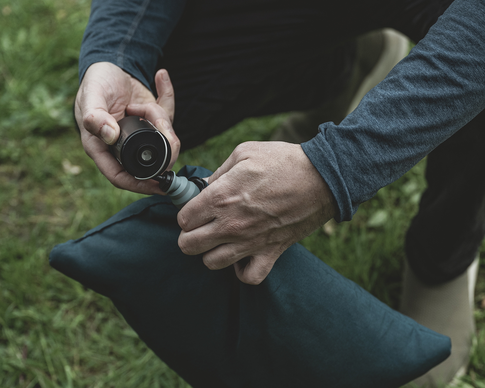 Denna uppladdningsbara pump gör uppblåsning av luftmadrasser och liggunderlag snabb och effektiv med en kapacitet på 180 l/min. Med en vikt på endast 67 g och kompakt mått på 7,1 x 4,6 x 5,0 cm tar den nästan ingen plats i ryggsäcken. Dualfunktionen innebär att du både kan blåsa upp och tömma din utrustning, vilket gör nedpackningen betydligt snabbare. Pumpen levereras med 5 olika luftmunstycken, så den passar till din campingutrustning.