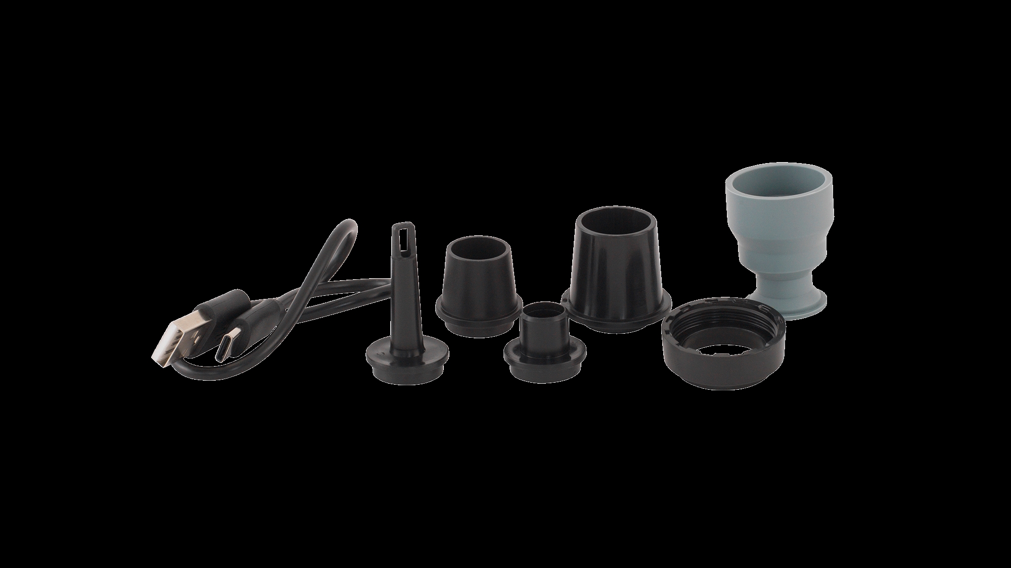 • Ingår i förpackningen: pump, 5 luftmunstycken, bärpåse, USB-C kabel