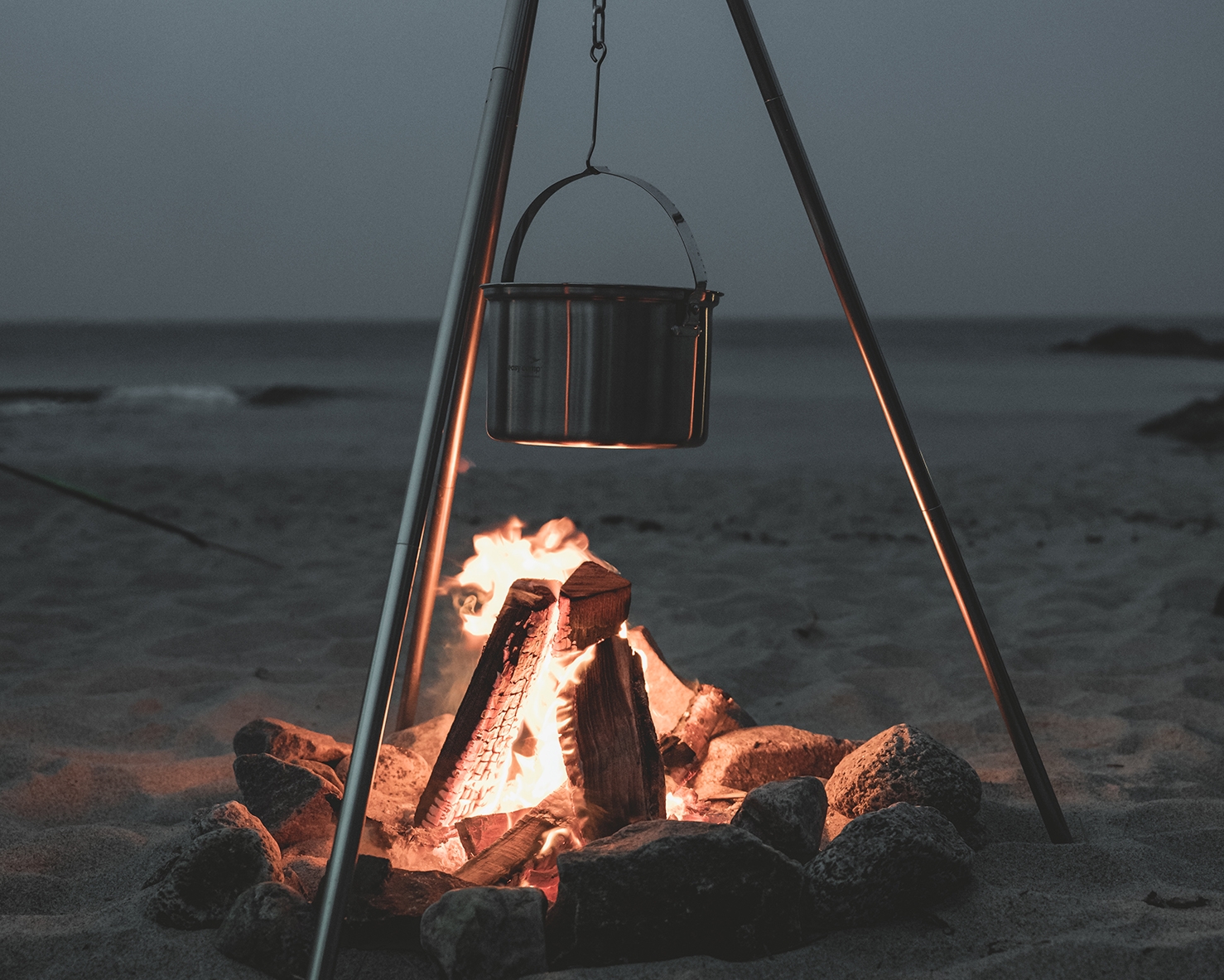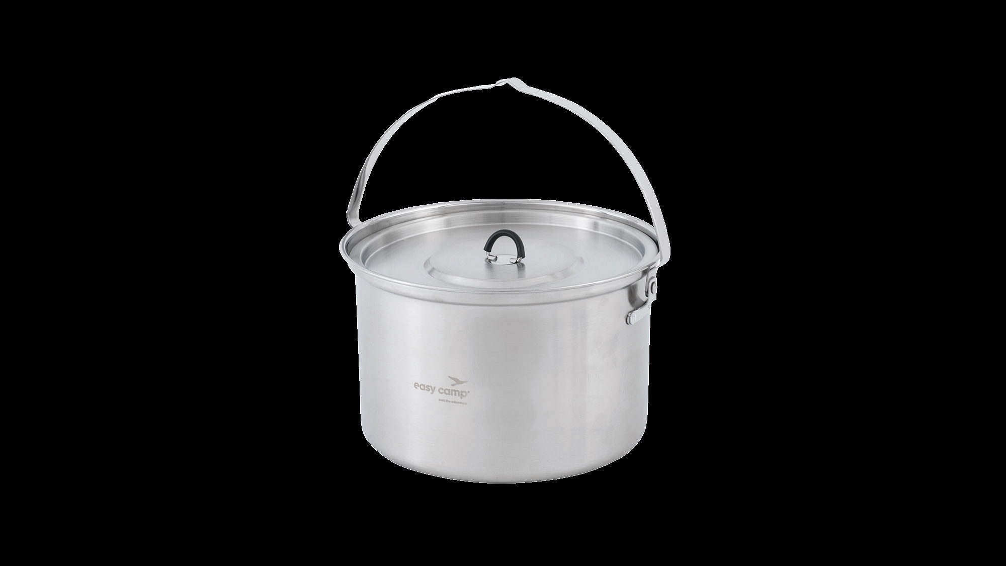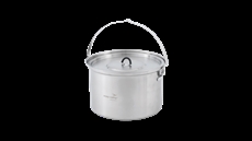 Eldgrytan är tillverkad av robust rostfritt stål som tål direkt eld och säkerställer lång livslängd under campingturer. Kapaciteten på 4 liter gör den idealisk för matlagning för grupper på 4-6 personer, vilket sparar tid och bränsle vid elden. Handtaget är designat för användning med ett eldstativ, så du får en säker och stabil upphängning över flamman. Locket har ett silikonhandtag som skyddar mot brännskador vid hantering av kokande vätskor.