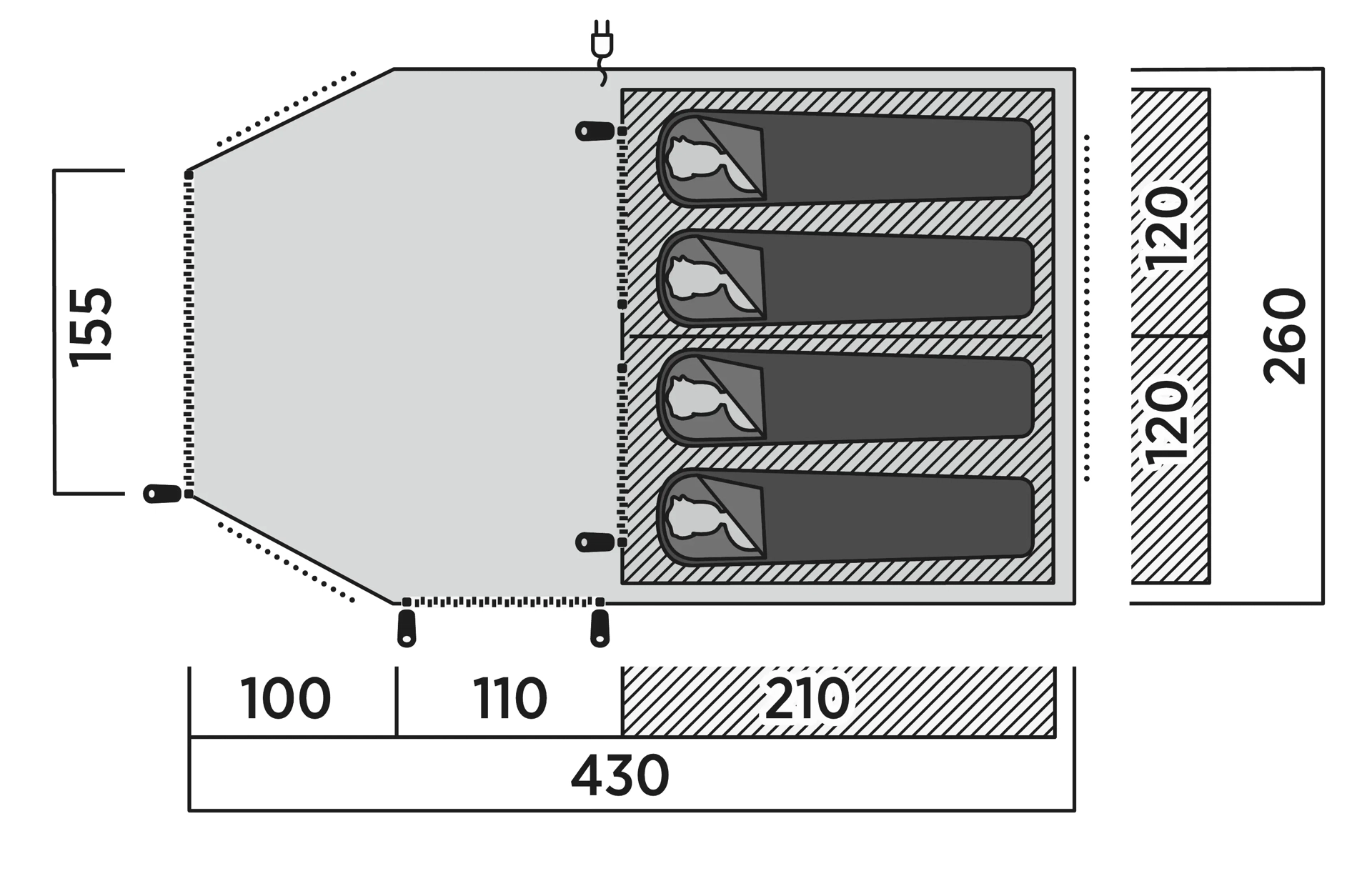 • Avtagbar sovkabinavdelare ger extra privatliv när det behövs