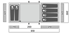 • Dimensioner 610 cm längd 240 cm bredd 195 cm höjd