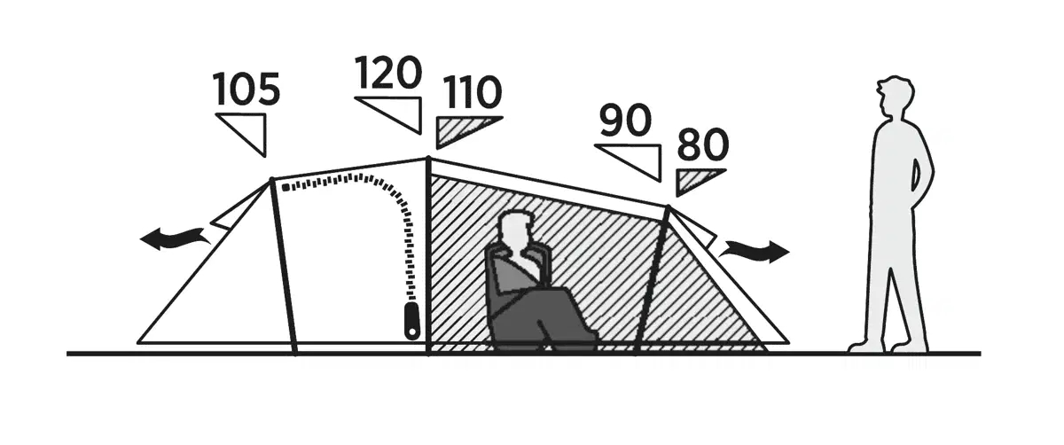 • Ventilation: öppningar fram och bak på tältet
