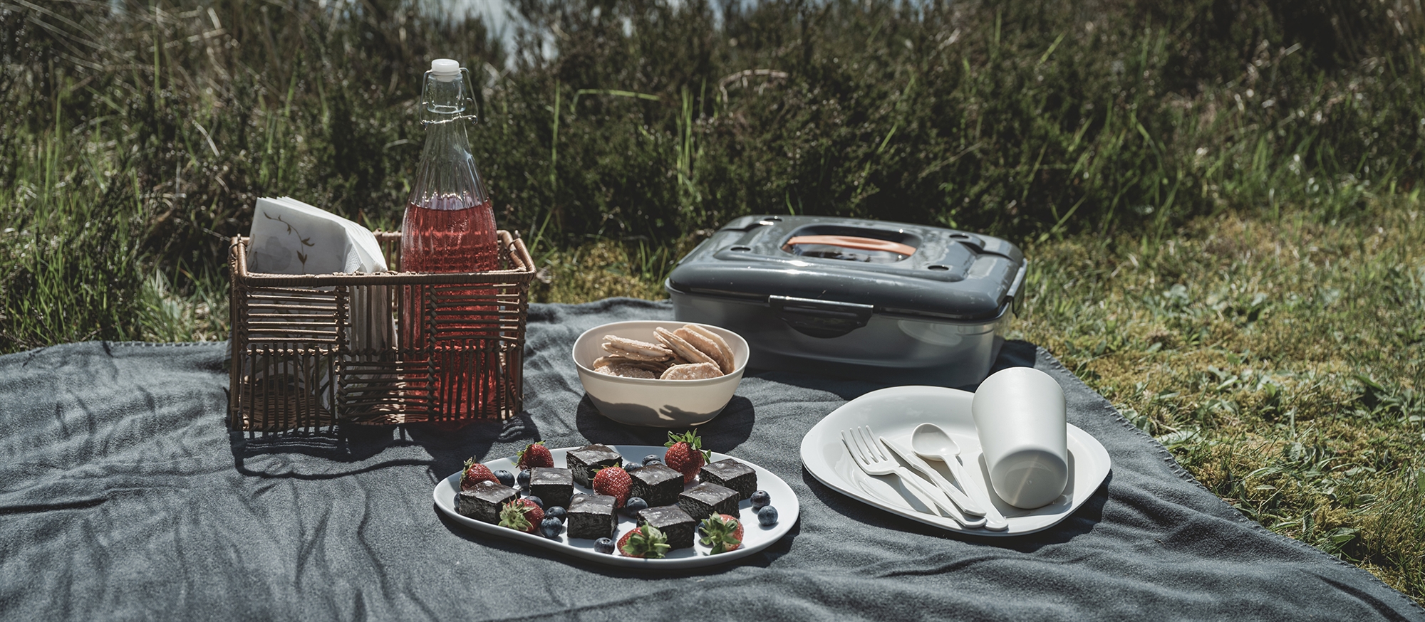 • Inkluderat: 1 picnic box, 4 tallrikar, 4 muggar, 4 skålar, 4 gafflar, 4 knivar, 4 skedar