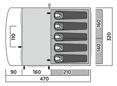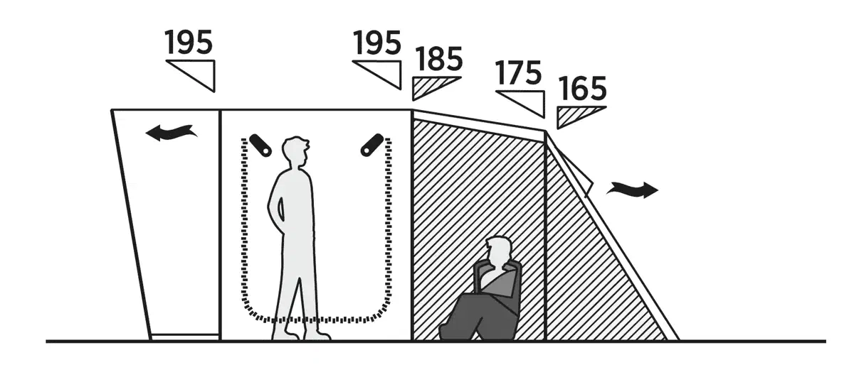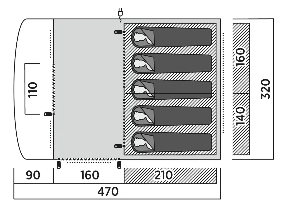 Tunnelkonstruktionen ger extra utrymme och skapar en hemtrevlig atmosfär under campingresan. De två sovrummen och sällskapsrummet säkerställer att familjen både har avskildhet och ett gemensamt utrymme att samlas i. Ståhöjden på 195 cm betyder att vuxna kan röra sig runt utan att behöva böja sig, vilket gör längre vistelser långt mer bekväma. Kombinationen av rymlig inredning och praktisk funktionalitet gör Skarvan 5 lämplig för familjer som önskar både utrymme och komfort på campingplatsen.