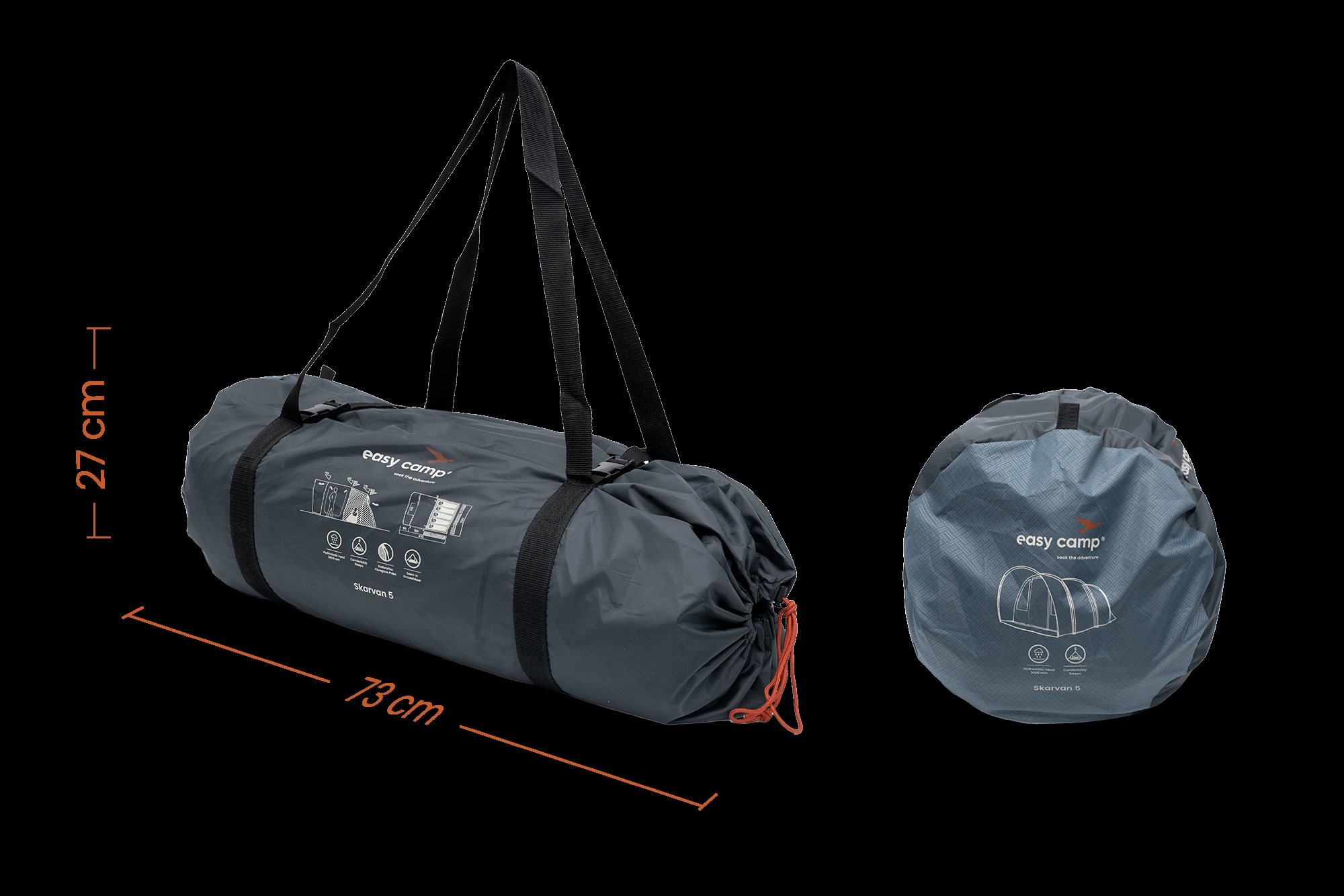 Detta tunneltält ger plats för 5 personer fördelat i 2 sovutrymmen och ett rymligt sällskapsrum med en ståhöjd på 195 cm. Tältet har en vattenpelare på 3000 mm med tejpade sömmar, vilket skyddar effektivt mot regn under familjecampingresan. Monteringstiden är 9 minuter tack vare färgkodning på stänger och stängfickor, så det finns mer tid för avkoppling och familjeaktiviteter. Yttertältet är gjort av WeatherGuard 3000, 190T polyester PU-belagd och brandsäker, medan innertältet består av andningsbar polyester. Botten är gjord av dubbellaminerad, vattentät polyeten. Tältet väger endast 16,6 kg och har en packad storlek på 73 x 27 cm.