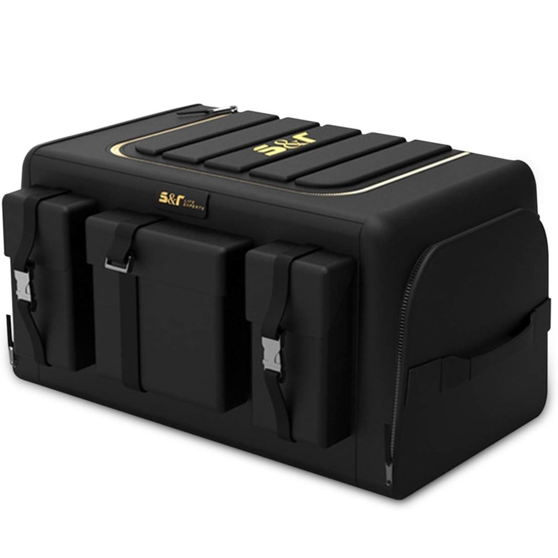 Med en rymlig kapacitet på 50 liter ger denna förvaringsväska dig effektiv organisering av bagageutrymmet. Det vattentäta 1680D Oxford-materialet och den halkfria botten säkerställer att dina saker förblir skyddade och stabila under körningen. Väskan är konstruerad med tre lager kompositmaterial för maximal hållbarhet.