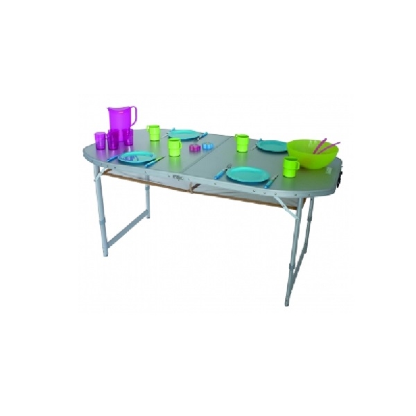 Praktiskt campingbord som är lätt att fälla ihop och transportera i den medföljande förvaringsväskan.
