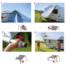 Denna markis blir snabbt en oumbärlig del av din camping semester. Den är tillverkad av lätta material och Lätt att montera. Kör markisen genom tältskenan på bilen och markisen är klar för användning.