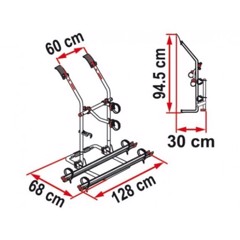 FIAMMA Carry Bike VW T1/T2 är specialdesignad för VW T1/T2 med enkel baklucka, producerad fram till 1980. Med en maximal belastning på 35 kg möjliggör den säker cykeltransport på din klassiska VW. Cykelhållaren, som är svart, levereras med 2 skenor och 2 byglar för fastsättning av cyklarna.