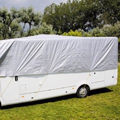 Skyddar din husbil mot regn, snö och smuts, både under campingturer och när den står hemma. Tillverkad av kraftig och slitstark vinyl med UV-beständigt material, som förlänger både överdragets och din husbils livslängd. Med mått på 850 x 520 cm täcker det stora fordon effektivt. Förstärkta hörn och öljetter för gummiband säkerställer att överdraget håller fast, även i blåsigt väder.