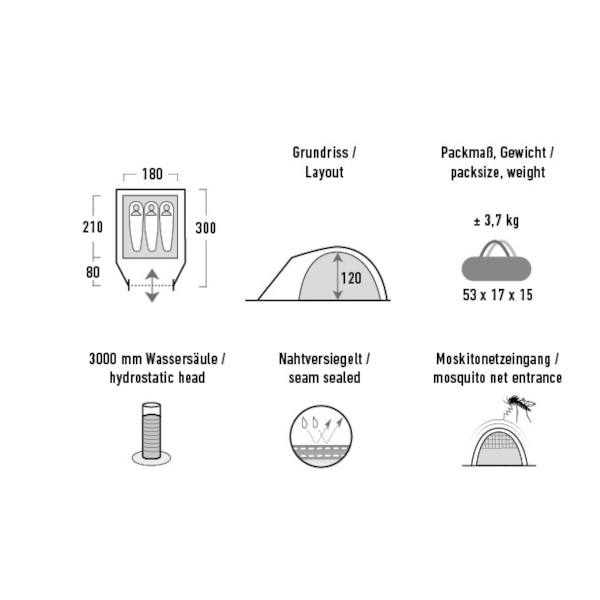 High Peak Nevada 3 är ett klassiskt iglotält i lättviktskvalitet med ett vattenpelartryck på hela 3000 mm.