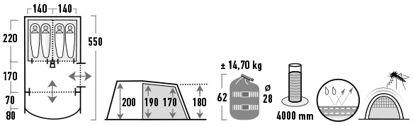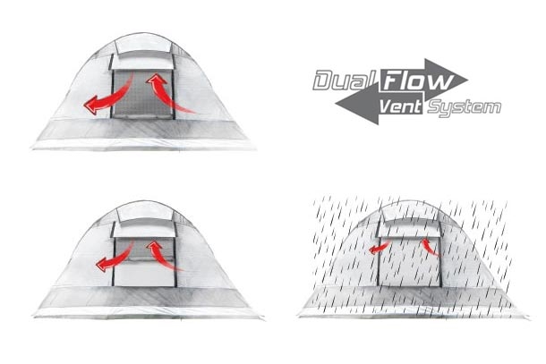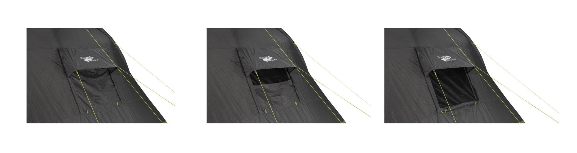 Myggnätsfönstren håller irriterande insekter borta från tältet och kan bekvämt manövreras från insidan beroende på klimatet.