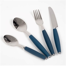 Elegant bestick för 4 personer från Holiday Travel i en snygg blågrå färg.