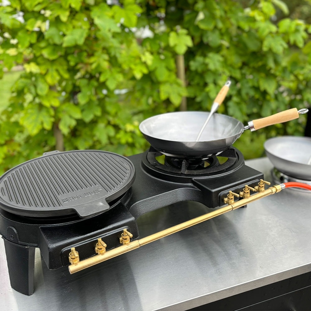 HOT WOK erbjuder professionell gasutrustning för restauranger och matentusiaster. Denna dubbla gasspis kombinerar råstyrka med exakt kontroll, så att du kan skapa autentiska wokrätter med rätt temperatur och teknik.