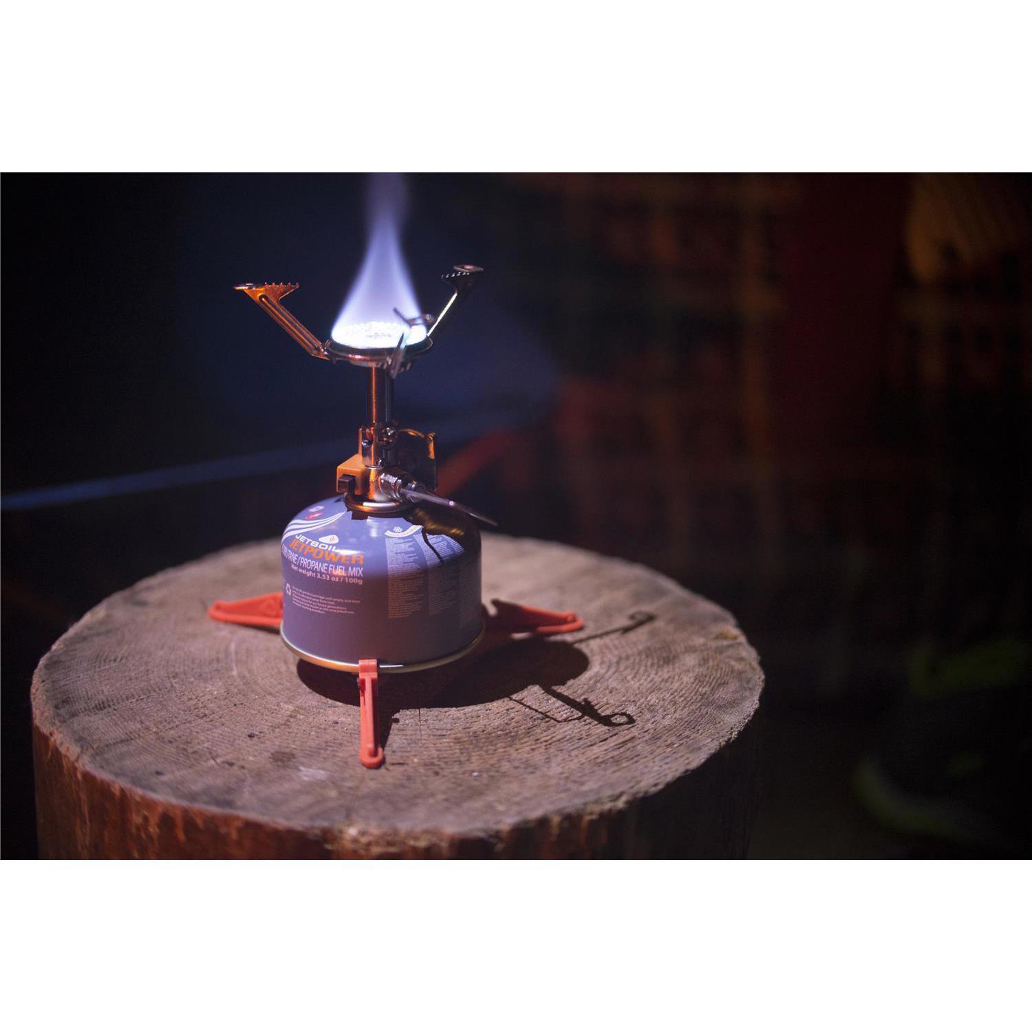 Brännaren mäter kompakta 10,4 x 9,5 cm och kan vikas ihop helt så den tar minimalt med plats i packningen. Brännaren är kompatibel med alla gasbehållare med EN417 gänga som är den nya standarden.