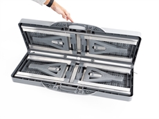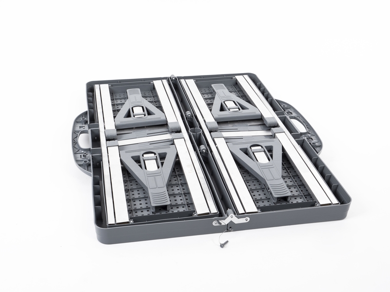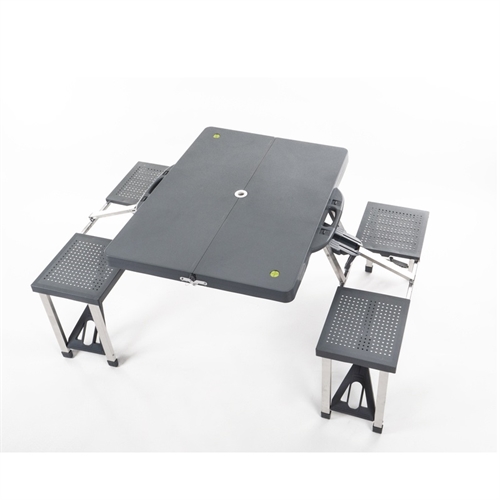 Detta picknickbord fälls ihop på mitten och har ett praktiskt bärhandtag, så du kan transportera det som en resväska till campingplatsen eller picknickplatsen. De fyra fast installerade sätena innebär att du inte behöver ta med separata stolar – fäll ut bordet så är det redo att användas. Med en vikt på 6,5 kg kan du enkelt bära det från bilen, medan packstorleken på 65 x 85 x 11 cm gör det enkelt att förvara i bagageutrymmet eller husvagnen.