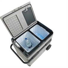 Kylboxen mäter utvändigt 60 x 43,5 x 57 cm (BxDxH) och väger 19,6 kg. De två facken har invändiga mått på respektive 27 x 31 x 47,5 cm och 20 x 31 x 30 cm. Med en maximal belastning på 125 kg och en låg ljudnivå på 45 dB under drift är kylboxen designad för krävande användning.