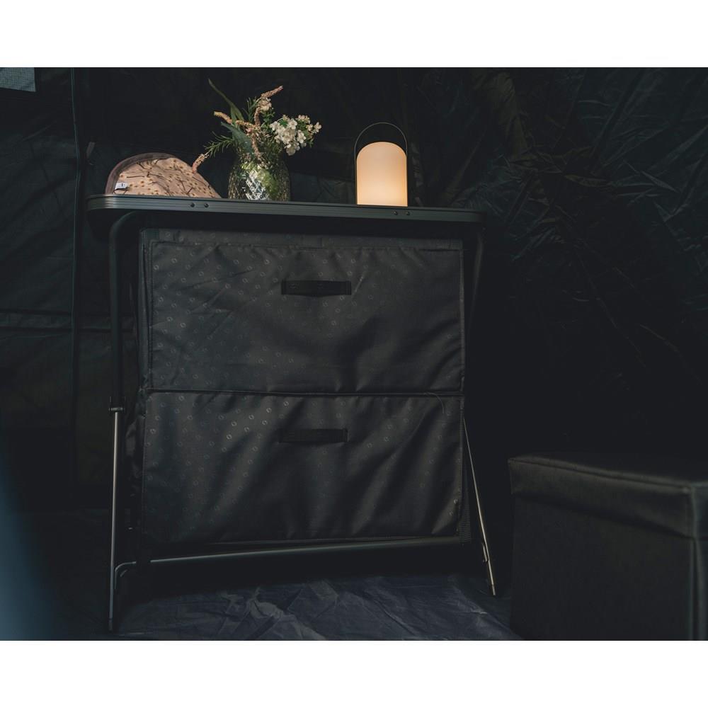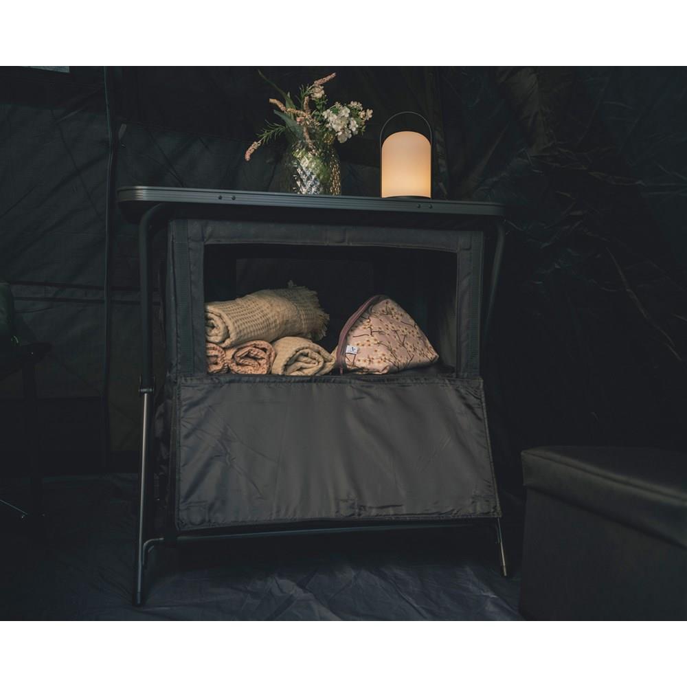Outwell utvecklar praktisk campingutrustning av hög kvalitet. Detta skåp kombinerar smart förvaring med hållbara material som kan motstå väder och vind. Den enkla uppsättningen och de många förvaringsmöjligheterna gör det till ett självklart val för festival eller camping.