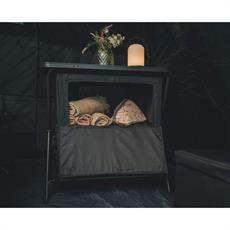 Detta campingskåp fälls upp på några sekunder utan montering, vilket sparar värdefull tid på campingplatsen. Med två stora fasta hyllor och en praktisk organiseringsficka på sidan får du gott om plats för kläder och utrustning. Aluminiumstativet och 600D polyester gör skåpet hållbart, medan magnetstängningen säkerställer enkel åtkomst och håller dina saker skyddade. Organisera ditt tält snyggt med detta BAHAMAS skåp från Outwell