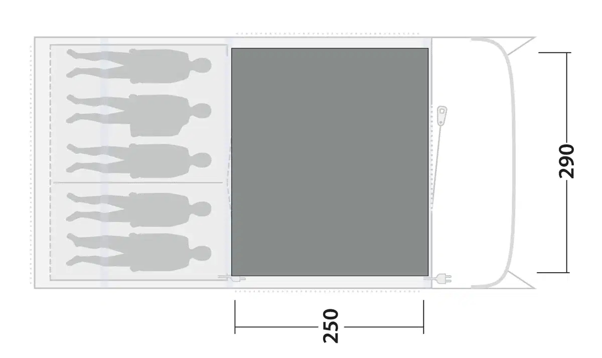 Mattan är lämplig för längre campingvistelser med sin kombination av mjuka och slitstarka material. De fyra hörnfästena håller mattan säkert på plats, även vid hög aktivitet i tältet. Den praktiska designen gör det lätt att rulla ihop med de integrerade svarta bärremmarna, vilket sparar plats under transporten. Materialet är både robust och bekvämt att gå på, och det präglade sicksackmönstret ger tältet ett inbjudande uttryck. Mattan är specifikt anpassad till Florida 5 Air-tältet, vilket säkerställer en ideal passform och maximal komfort under hela din campingvistelse.