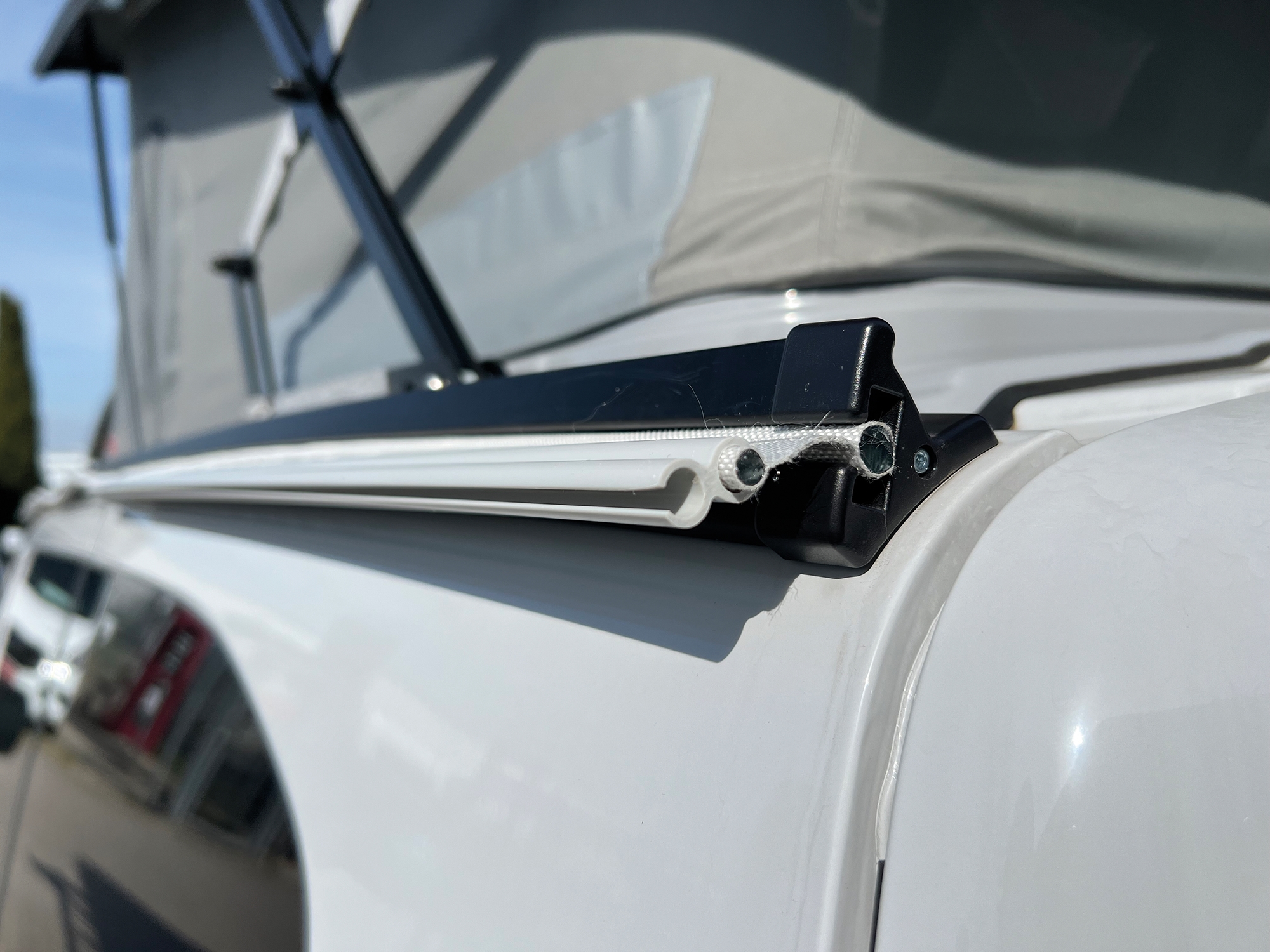 Om du reser med husvagn eller campingbil utrustad med Crosscamp eller annan 9 mm fastmonterad tältlist, ger detta connect set en säker och flexibel koppling mellan ditt drive-away förtält och fordonet. Kedjebreddarna på 7 och 9 mm säkerställer en stabil och säker anslutning till ditt tält som har 7 mm kedja och motstår blåsväder och regn på öppna campingplatser. Takanslutningens längd på 260 cm förhindrar vatteninträngning och drag, vilket skapar ett bekvämt inomhusklimat och övergång mellan tält och camper.