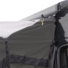 Detta drive-away fortält från Outwell är tillverkat i Outtex 6000 Express RS-material med ett imponerande vattenpelartrycksvärde på 6000 mm, vilket ger dig säker skydd i alla väder. Luftkanalkonstruktionen ersätter traditionella stänger och gör uppsättningen snabb och enkel. Med en takanslutningslängd på 250 cm och en monteringshöjd från 175-200 cm passar fortältet till de flesta husbilar, och du kan enkelt köra iväg och tillbaka igen utan att behöva ta ner hela fortältet. Den symmetriska designen med huvuddörrar i båda ändarna ger dig flexibel tillgång, medan de tonade fönstren säkerställer både bra ljusinsläpp och integritet. Den sydda botten håller insekter ute, och UV-skyddet med UPF 30+ skyddar dig från solen. Fortältet har praktiska funktioner som HookTrack-systemet för upphängning av ljus och utrustning upp till 1,5 kg, och det inbyggda nattljussystemet ger god synlighet på kvällen. Med en packstorlek på 78 x 37 x 41 cm och en vikt på 23,1 kg är fortältet lätt att transportera och förvara.