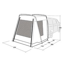 Detta fristående busstält ger dig extra utrymme och enkel montering till t.ex. din VW T5/T6/T6.1 eller MB W639/W447 eller liknande. Med en vattentäthet på 3 000 mm är det lämpligt för längre vistelser.
