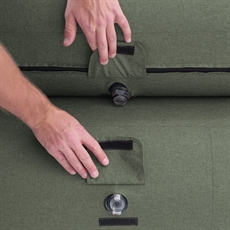 Detta uppblåsbara möbelset ger dig maximal komfort under campingturen. Soffan har en belastningsförmåga på 250 kg och mäter 175 x 80 x 70 cm, vilket ger gott om plats för avkoppling efter en dag med utomhusaktiviteter. Den vattentäta botten med PU-beläggning skyddar effektivt mot fukt från underlaget. Stolen (100 x 80 x 70 cm) har en belastningsförmåga på 115 kg, medan ottomanen (73 x 55 x 37 cm) klarar 85 kg. Konstruktionen i 300D tvåfärgad polyesteröverdrag och PVC säkerställer hållbarhet och hög slitstyrka, medan de breda armstöden och en sitthöjd på 37 cm ger optimal sittkomfort. De användarvänliga ventilerna gör det lätt att justera luftmängden efter behov.