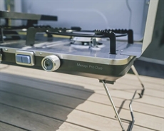 Med individuellt styrd piezotändning och regulator för varje brännare får du exakt kontroll över värmen på denna portabla gaskokare. De två kraftiga 3.000 W brännarna ger snabb matlagning, och den integrerade vindskärmen säkerställer stabil värme under olika väderförhållanden. De hopfällbara benen ger en bekväm arbetshöjd och extra bordsutrymme. De stora, avtagbara grytstöden i emaljerat stål håller dina grytor stabilt, medan de hållbara zinklegeringsknapparna ger bra kontroll. Med en vikt på 4,5 kg och en packstorlek på 55 x 32 x 9,5 cm är kokaren lätt att transportera. Gasförbrukningen på 2 x 218 g/h och användningen av EN417 självförslutande gaspatroner gör det enkelt att planera längre resor. Den robusta konstruktionen i rostfritt stål säkerställer lång hållbarhet vid utomhusbruk.