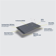 Tältet är konstruerat med Outtex® 4000 Select polyester och dubbellagrat vattentätt polyeten i botten. Den andningsbara polyestern i innertältet säkerställer god ventilation, medan det PU-belagda taffeta-polyestern i sovkabinen ger extra skydd. Dessa material bidrar till tältets mångsidighet under olika väderförhållanden. Den blå färgen ger tältet ett diskret och elegant utseende som passar bra in i de naturliga omgivningarna.