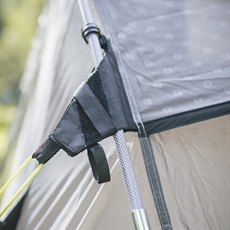 Inbyggt botten-system skyddar effektivt mot fukt och insekter med Outwell Sewn-in Ground System. Det speciella HookTrack-upphängningssystemet möjliggör säker fastsättning av extra utrustning och gör inredningen flexibel. Den höga ingången underlättar transporten mellan bil och tält, medan de stora tonade fönstren med fixpunktsgardiner säkrar både ljus och privatliv. Guyline Retainer System gör uppsättning och nedtagning enkel och organiserad, medan den vattentäta blixtlåsen håller vädret ute.