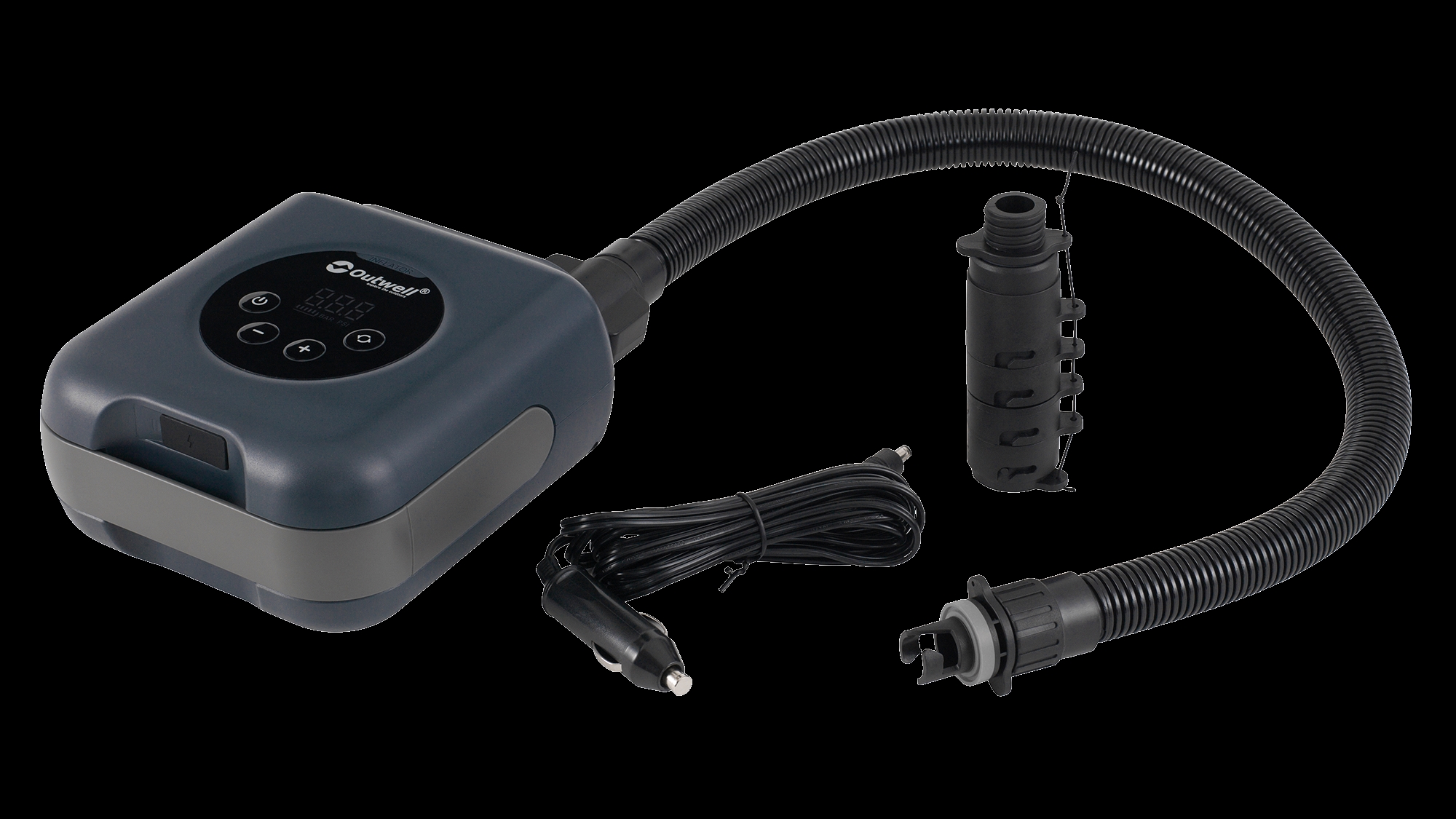 • Inkluderat i paketet: Pump, 7 ventiladaptrar, Outwell FHF-ventiladapter, USB-C kabel, 12V kabel, flexibel slang
