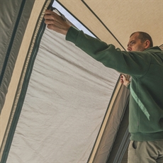 Innertältet / sovkabinerna är gjorda av 65 % polyester och 35 % bomull, vilket skapar en andningsbar konstruktion, som minskar kondensbildning vid längre tids användning. De justerbara ventilationspanelerna ger möjlighet att anpassa luftcirkulationen i tältet efter väderförhållanden och personliga preferenser. Denna kombination av andningsbart innertält och justerbar ventilation hjälper till att reglera temperaturen inne i tältet, vilket är avgörande för komfort vid campingturer med växlande väder. Materialkompositionen säkerställer också, att fukten från andning och aktivitet kan slippa ut, eftersom även ytterduken i Outtex Airtech i teknisk bomull både är andningsbar, binder kondens och samtidigt skyddar mot regn utifrån.